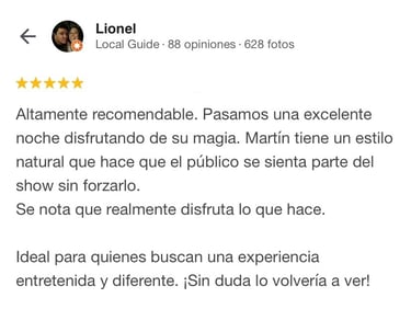 Sí. Cada espectáculo se adapta al espacio, cantidad de invitados y estilo del evento. Trabajo tanto con empresas como con quienes buscan un mago para eventos privados.