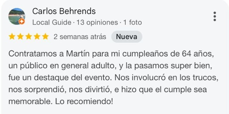 Claro. El show está pensado para mayores, con humor, mentalismo e ilusionismo. Si buscás un mago para cumpleaños que combine participación, risas y asombro, esta es una opción ideal.
